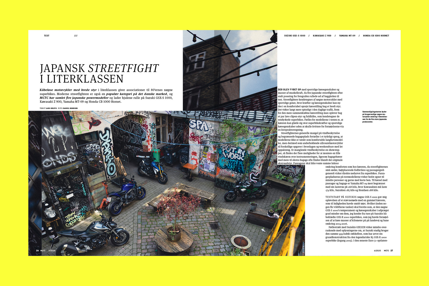 - Streetfighter-stortest med Honda CB 1000 Hornet, Yamaha MT-09, Suzuki GSX-S 1000 og Kawasaki Z 900