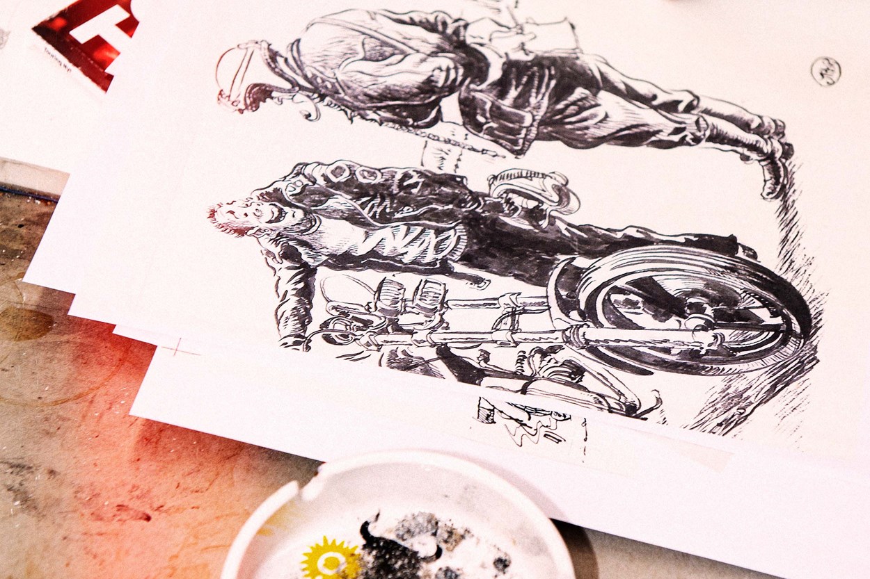 Selvom det efterhånden er mange år siden, at den i dag verdenskendte billedkunstner gjorde det i mc-karikaturtegninger, så er MCTC stadig i besiddelse af en stor del af originaltegningerne fra Kviums hånd.