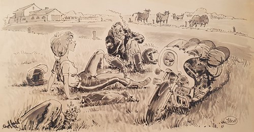 Som vi også kunne fortælle i første udgave af MCTC-magasinet, var Michael Kvium fast tilknyttet bladtegner på Touring Nyt fra 1975 og cirka 10 år frem. I den periode tegnede han adskillige karikaturtegninger til bladet, som alle havde motorcykler og/eller motorcyklister som omdrejningspunkt.