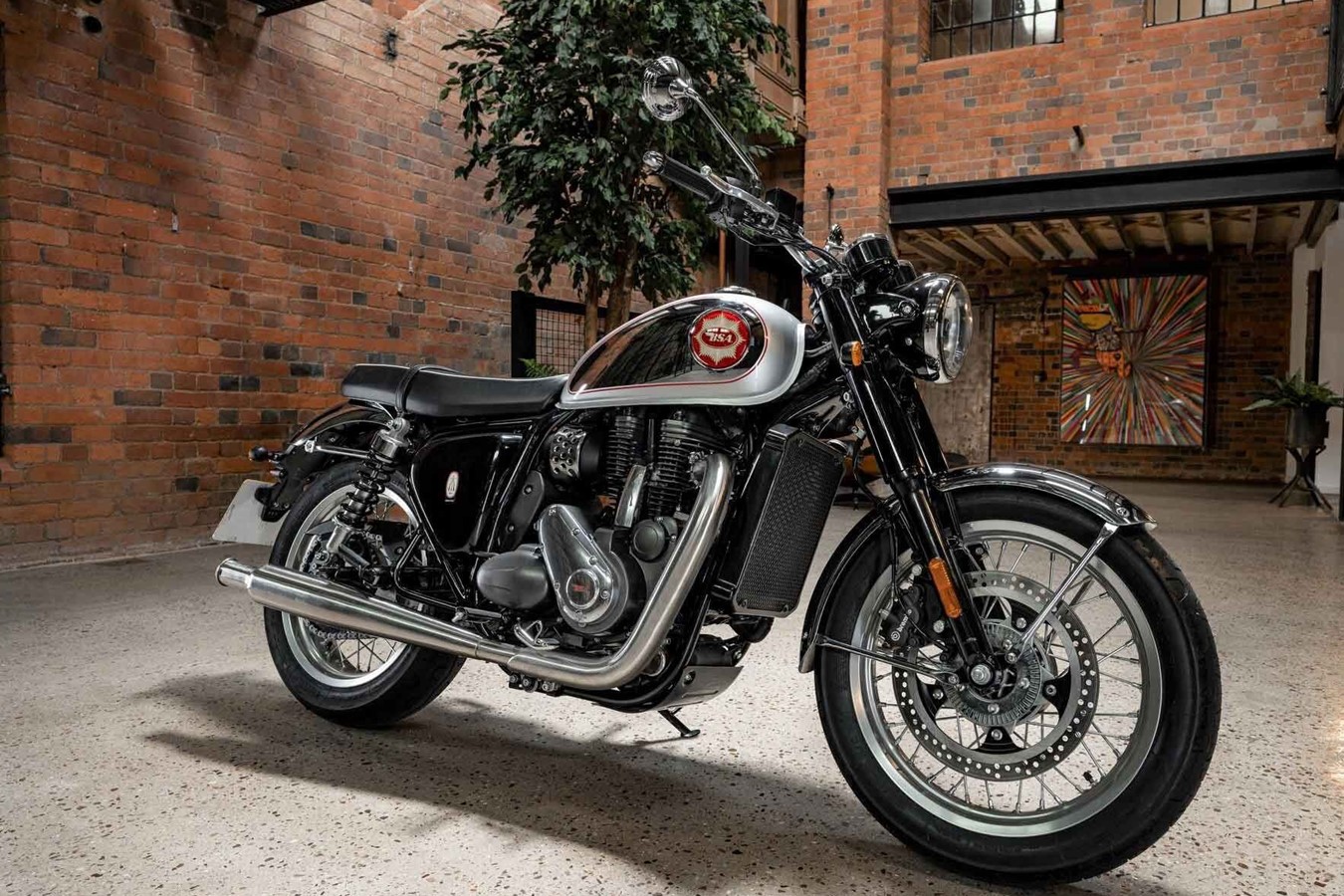 BSA lancerer første nye model i 40 år, og Gold Star 2022-modellen fremstår i rendyrket retrodesign, der minder om modeller fra det britiske Birmingham Small Arms storhedstid i 50/60’erne. Teknikken er mere moderne, og Gold Star drives af en 652 kubik, 1-cylindret, vandkølet motor med dobbelt overliggende knast, som fabrikken opgiver til 45 hestekræfter ved 6.000 o/min. og 55 Nm drejningsmoment ved 4.000 o/min. kræfterne overføres via en 5-trins gearkasse og kædetræk.