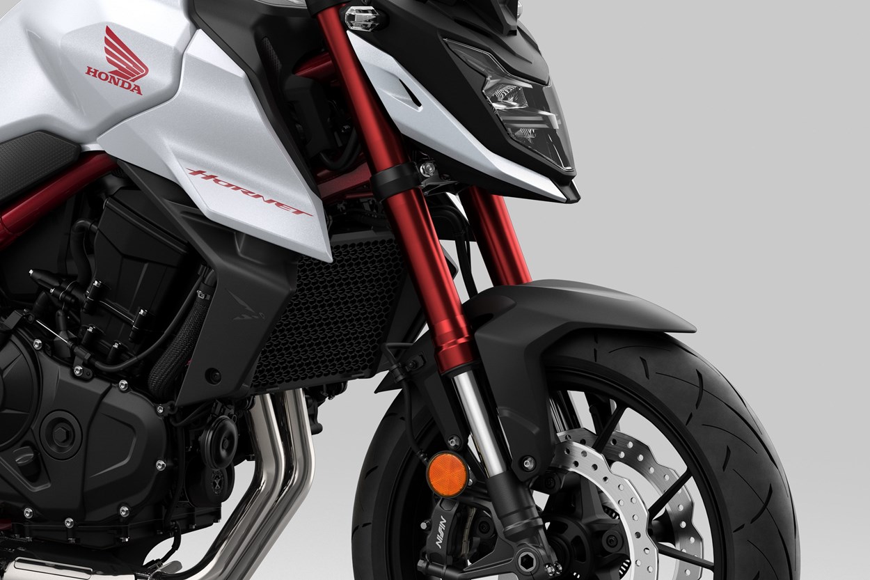 Specifikationslisten på den nye Hornet omfatter også en hel del standardudstyr, som den første Hornet fra 1998 ikke kan prale af – heriblandt Throttle By Wire med tre køreindstillinger og 3-trins Honda Selectable Torque Control med integreret Wheelie Control. Det nye stel har fuld Showa-affjedring med 41 mm USD-forgaffel og Prolink-bagstøddæmper, og så har CB 750 Hornet også fået 5" TFT-display med Honda Smartphone Voice Control (HSVC).