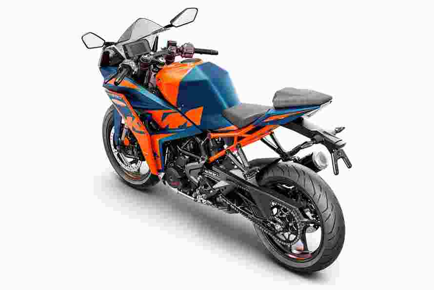 Den nye RC 390 er udført i KTM's MotoGP-farver orange og blå.