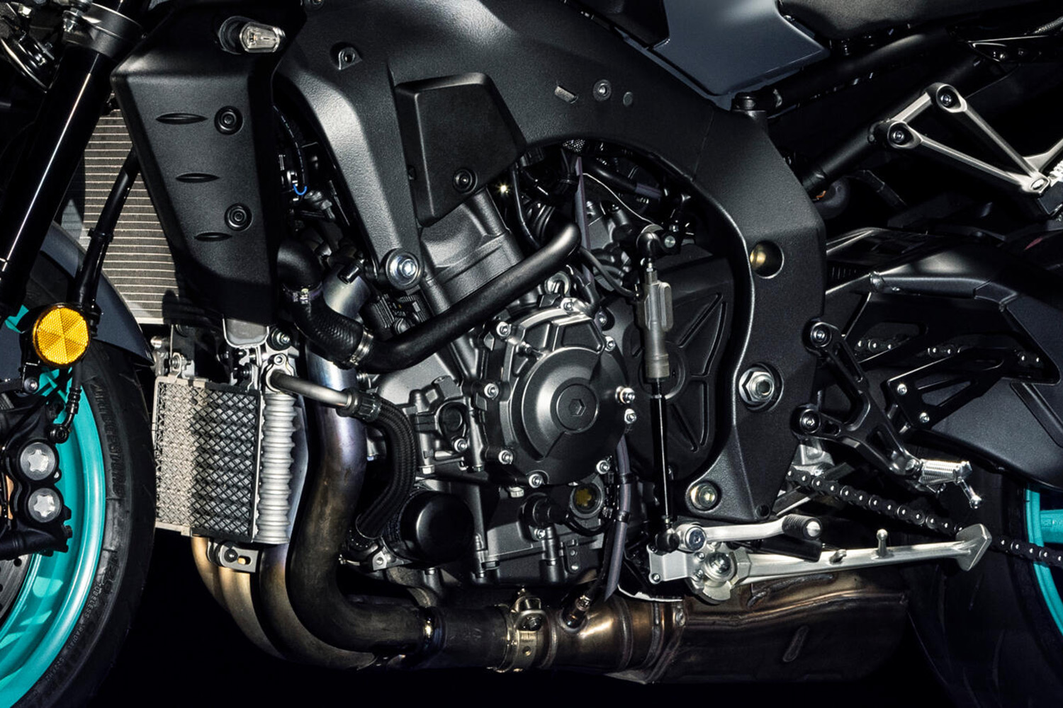 Den firecylindrede rækkemotor har i MT-10 plejlstænger i stål i stedet for R1'erens titaniumstænger, og generelt er MT-versionen af motoren mere fokuseret på gadekørsel, hvad angår både teknik og tuning. Opdateringen har hævet effekten fra 160 til 166 hk, mens momentet peaker ved 112 Nm og skulle være øget og udglattet i mellemområdet ved 4.000-8.000 o/min.