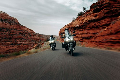 Selvom DSR/X i kraft af din drivlinje adskiller sig fundamentalt fra de fleste konkurrenter, fås den med det sædvanlige adventure-udstyr. Her er høj vindskærm, hårde tasker og grove dæk med egerfælge, mens Z-Force 75-10X motorens 225 Nm og 100 hk burde klare både touring og terræn.